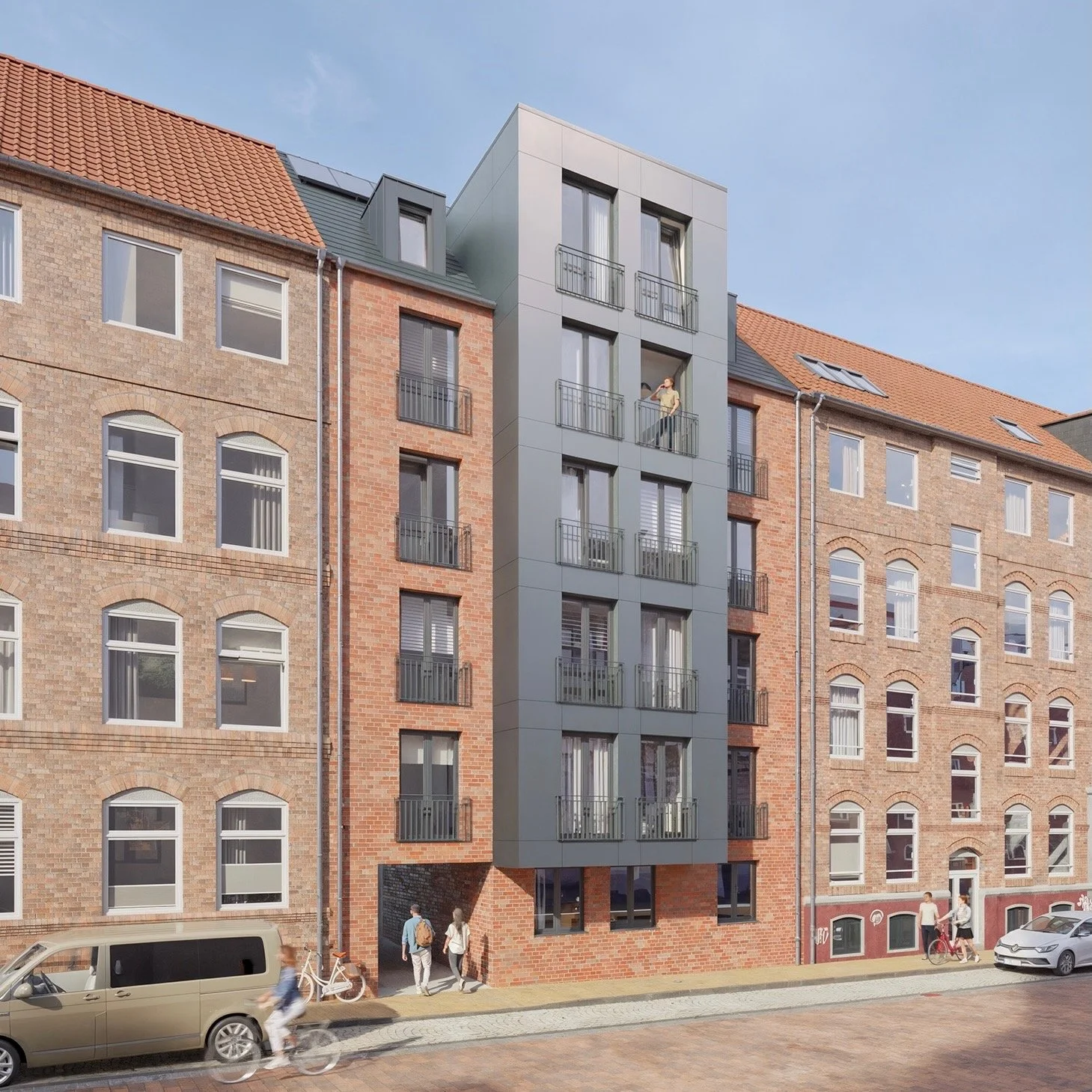 Diese Darstellung zeigt eine Visualisierung des geplanten Neubaus mit 16 Einzimmerwohnungen.